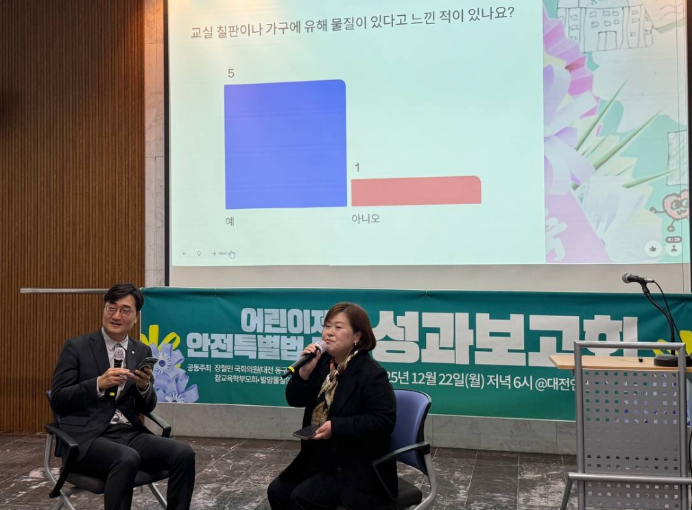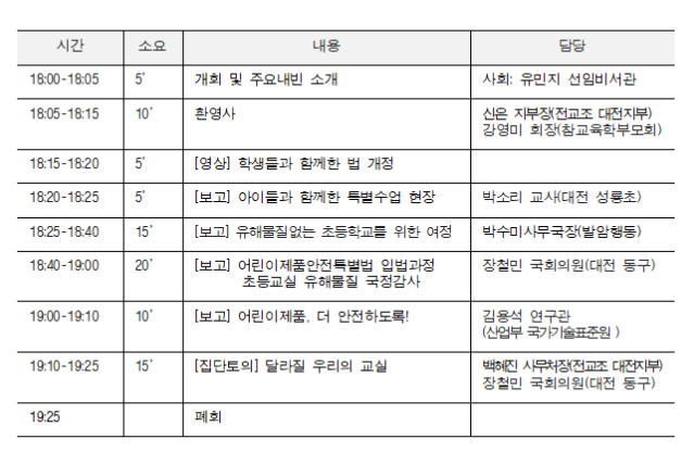 - 주최: 장철민 국회의원(대전 동구), 전교조 대전지부, 참교육학부모회 발암물질없는사회만들기국민행동