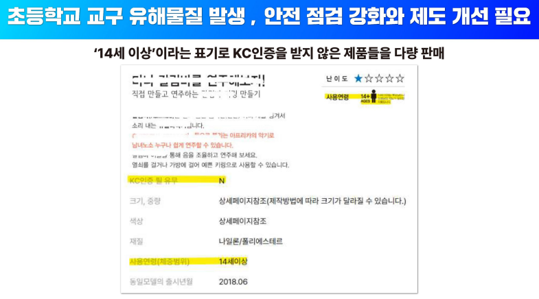 칠판과 게시판 유해물질 검출을 계기로 교구 전문 쇼핑몰에서 판매하는 제품의 KC 인증 여부를 조사하고 지속적으로 모니터링하는 등 어린이 건강을 위해 관리를 강화할 계획입니다.